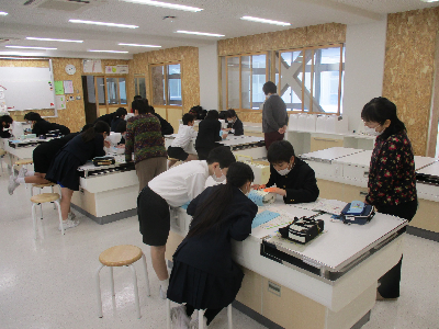14日(金)、本日18日(火)に家庭科でミシンの学習をしました。