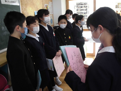 5年生が代表して6年生の教室に行き、プレゼント渡しと感謝の言葉を伝えるという、