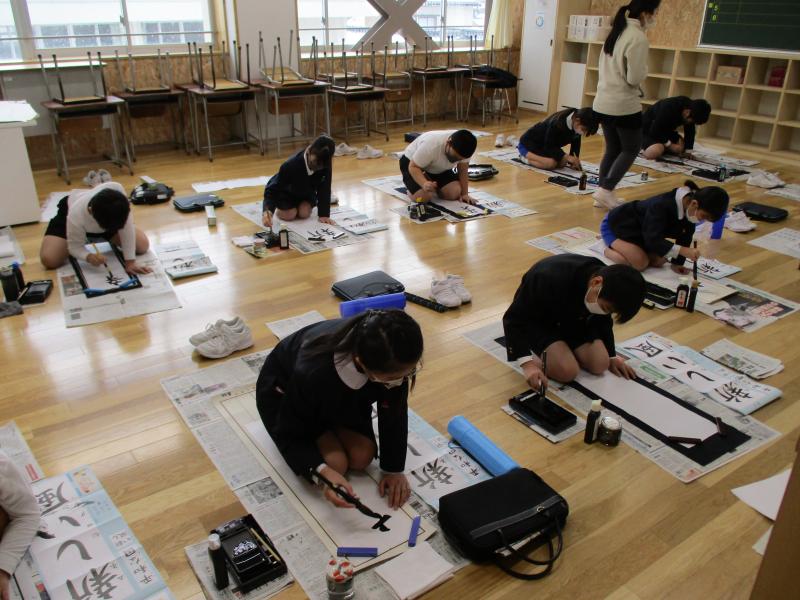 1/7(木)、始業式の日に全校で書き初め大会が行われました。