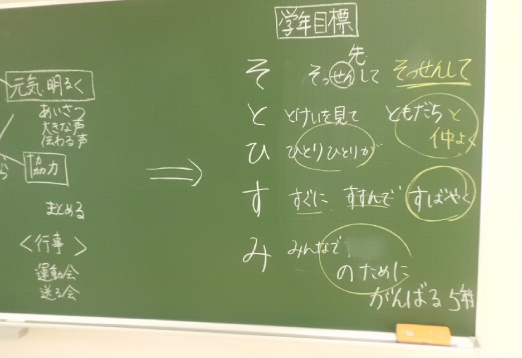 この目標をもとに授業や行事など、さまざまな場面で活躍してくれることを期待しています。