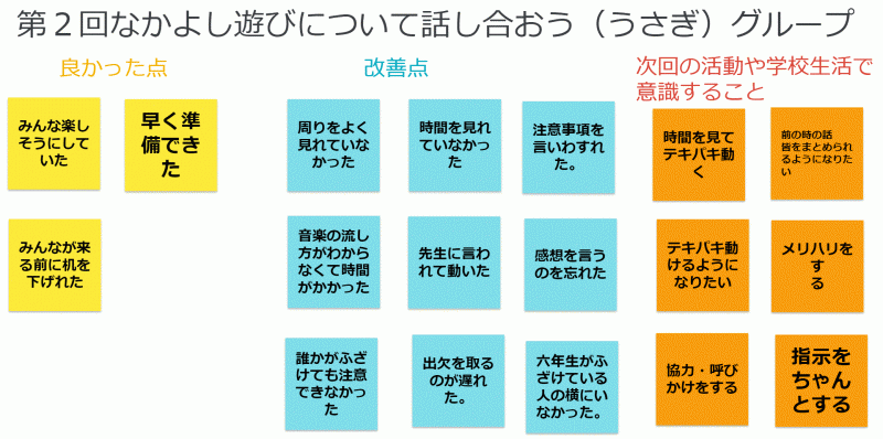↓グループごとに話し合った振り返りをみながら次の活動の計画を立てましたね!