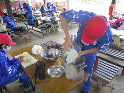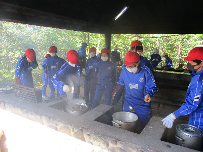 午前中は、グループごとに野外炊飯をしました。仲間と協力しながらのカレー作り!