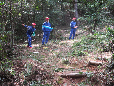 午後は、ディスクゴルフという、フリスビーを投げてゴルフのように各ホールのゴールを目指すという