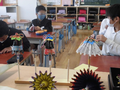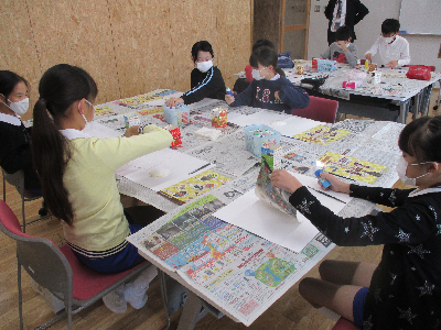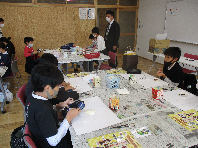 考えながら楽しそうに作っていました。持ち手を付けたり、飾りを付けたり、工夫しながら