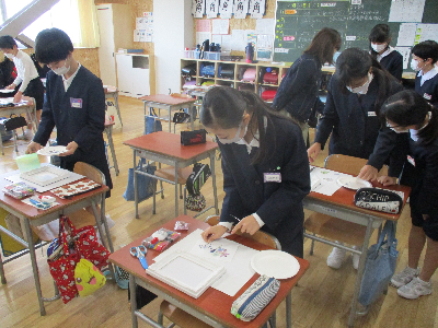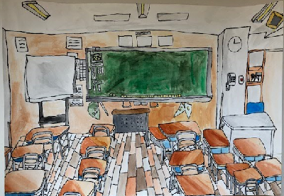 完成した校舎、新しい教室で過ごす6年生が、自分の大切な風景を選んで絵に描きました。