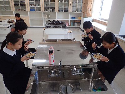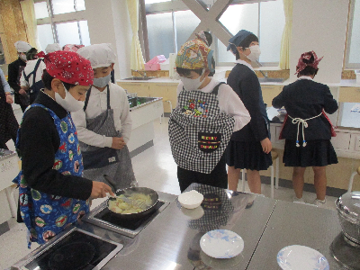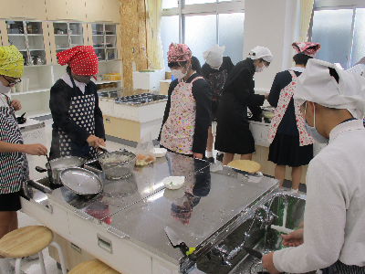 今年度初めて、家庭科の授業で調理実習を行いました。