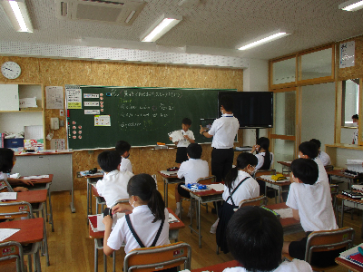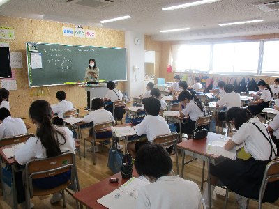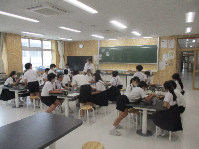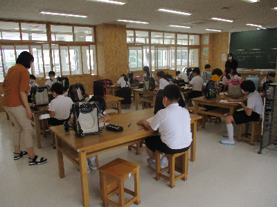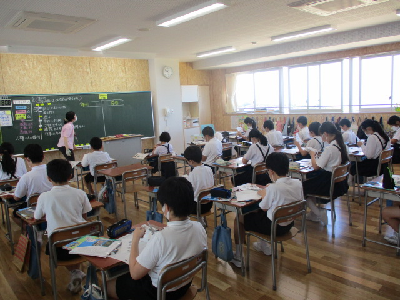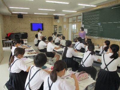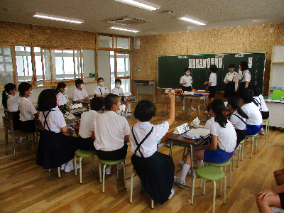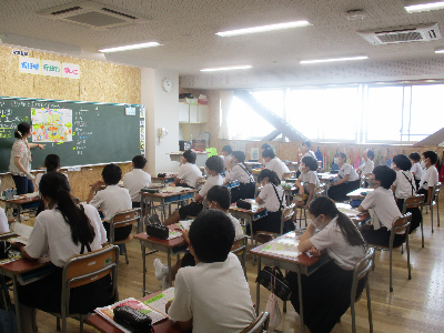 家庭の授業です。夏を涼しく過ごすための工夫について考えています。