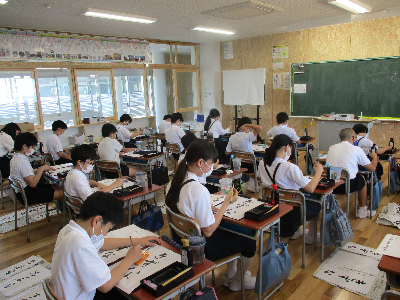 姿勢にも気をつけながら、真剣な様子で「きずな」を練習しています。