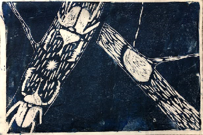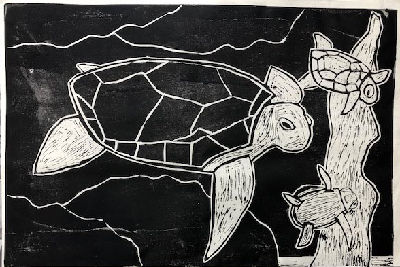 図工の授業で取り組んでいた、版画の作品が仕上がりました。