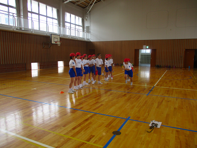 体育の授業です。スポチャレいしかわに取り組んでいます。自分たちの記録を更新できるよう、
