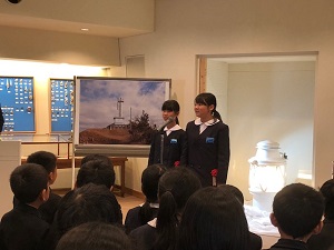 この校舎での現役生の最後の卒業生としてメッセージを伝えました。