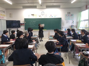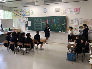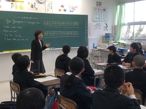 子どもたちは、中学校の先生ということで、多少緊張した様子でしたが、あいさつからアルファベット表記の基本を学ぶことができました。18日(金)には数学が予定されています。少しでも中学校へスムーズな移行ができればと思います。