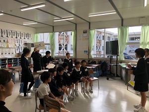 18日に出前授業(数学)がありました。今回は、数学ということで子どもたちはわくわくした気持ちもありながら、どんな難しい内容を勉強するのか不安な様子でした笑