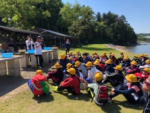 大型カヌー、途中点に全員上陸