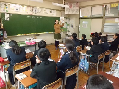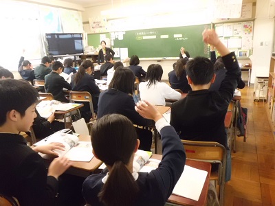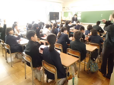 子どもたちは中学校の先生ということで、少し緊張気味でしたが、一生懸命授業に参加していました。