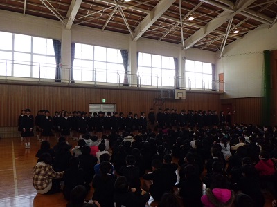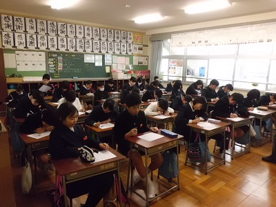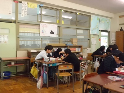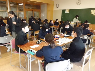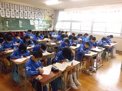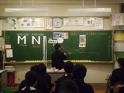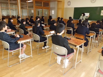 今日は河北台中学校の数学の授業を受けさせてもらいました。中学校での勉強は小学校での学習をより深めていくものなので、この2ヶ月でしっかり学習しておくとスムーズに中学校で勉強ができる。といったようなお話をいただきました。