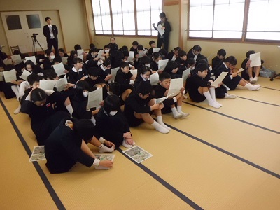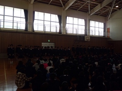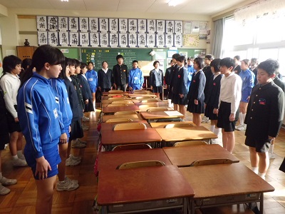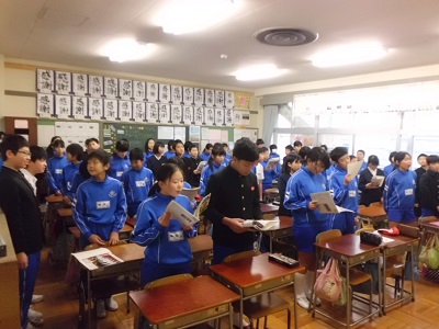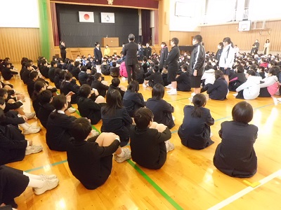 先日、インフルエンザの流行により延期になっていた音読発表会(全校集会)が今日の避難訓練後に行われました。延期になり、気持ちを維持し続けるのが難しいなか、今日はばっちりきめてくれました。さすが、勝負強い子たちです。発表終了後は下級生や先生方からたくさんのお言葉をいただき、とてもいい発表になりました。
