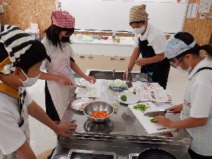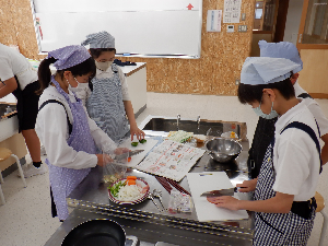 グループで協力しながら食材を切ったり、食材を炒めたり、食器などの片付けをしたりしていました。