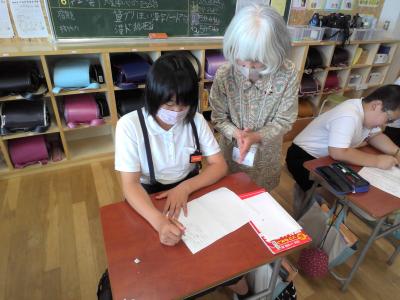 外日角小学校からは、いしかわ百万石文化祭に向け6年生は短歌を作成します。そこで6月20日(火)、ゲストティーチャー(石川県歌人協会より)を4名お招きし、短歌について学び、実際に作りました。基礎的な知識だけでなく、優秀な作品を読んで工夫について確認してくれたり、体験やそのときに感じたことを引き出したりしてくれながら、一人ひとりに寄り添って作品づくりをサポートしれました。
