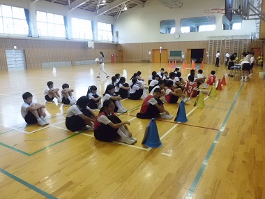 朝ステップの応援練習の様子