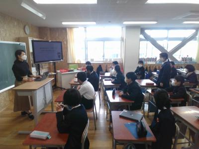 12月1日(木)、先日に引き続き、キャリア教育の一環として「ウェブデザイナー」の職について、安達さんに来校いただき、具体的な仕事内容について教えていただきました。実際に作成したウェブサイトや動画を紹介してもらい、そのクオリティーに感銘を受けつつも、その裏に隠れた細かな準備、苦労についても知ることができましたね。自分を見つめ、自分の個性を活かすことの大切さについてもお話しいただきました。みなさんも、じっくりと自分を見つめ、自分のよさを自覚するとともに、その個性を将来に繋げていけるといいですね。