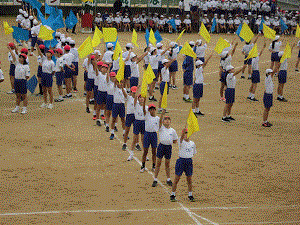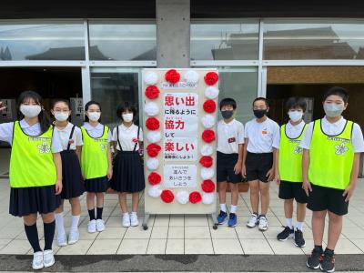 運動会に向け、5年生と協力しながら練習や準備に励んでいます。今年度の運動会のスローガンは、「思い出に残るように協力して楽しい運動会にしよう」です。全校のみんなから運動会で大切にしたいキーワードを集め、代表委員会で決定しました。そのスローガンを意識しながら、フラッグ演技の練習や応援練習、それぞれの係の役割など、忙しいながらも笑顔も見せながら頑張る皆さんの表情がとても輝いて見えます。暑い日が続くので熱中症に気をつけながら、本番の日に向けて頑張っていきましょう!