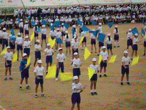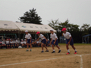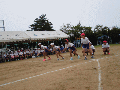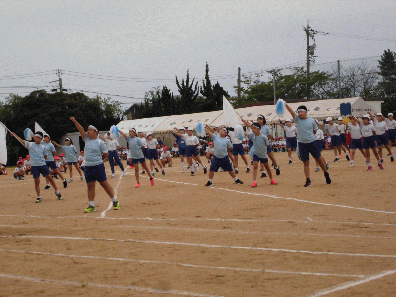 9月23日(金)、6年生にとって小学校生活最後の運動会が行われました。時間帯によっては小雨も降る中、それに負けない元気な姿で競技や準備など、それぞれの役割をしっかりこなしてくれました。個人走では最後までしっかり走りきる姿、応援では、練習含め最も大きな声を出そうと振り絞って頑張る姿、係の役割では、競技の裏で自分の役割をしっかりこなし、下級生を誘導する姿、団体演技では、観客席にまで届く大きな迫力ある音でフラッグを振る凜々しい姿、対抗リレーでは、一人でも追い越そうとあきらめずに走る懸命な姿・・・たくさんの輝く姿を運動会を通して見ることができ、とても嬉しく感じました。運動会を通して学んだことを活かし、中学校進学に向けより大きくなっていってほしいと思います。