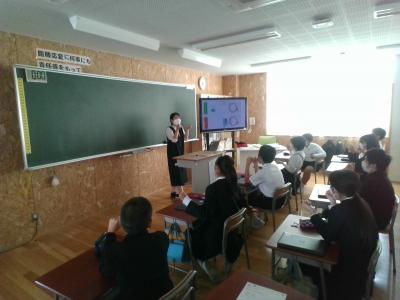英語の授業の時間に「行ってみたい国」についてのプレゼンを作成し、英語で伝え合いました。聞く相手が「行ってみたいな」と思えるような魅力的なプレゼンを目指し、声の大きさや目線、ジェスチャーなどを意識しながら伝えましたね。