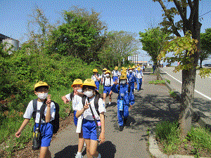5月2日(月)、高松運動公園まで遠足に行ってきました。六年生の遠足のめあては、『楽しく、安全、あいさつ、率先、臨機応変』を意識することです。地域の方やお世話になる方への挨拶や、怪我をしないよう気をつけて遊ぶこと、自分で判断して進んで動くことなど、めあてを意識して過ごしました。停まってくださった車の運転手の方に対して会釈をしたり、地域のいろんな方にあいさつしたりと、最上級生らしい姿がいたるところで見られました。遠い道のりでしたが、頑張って歩き、現地でもたくさん遊びました。実行委員が考えたイベント、『宝探し』と『クラス対抗ドッチビー』はどちらも盛り上がりましたね。今回の遠足で学んだこと、実践したことを、体験学習や集団下校など、さまざまな場面でも活かしていきましょう。