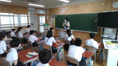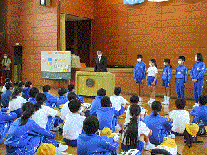 生活についてのお話の中では、6月の生活目標「ろうか・かいだんを正しく歩こう」についてふり返ったり、7月の生活目標「友達のよいところを見つけよう」について考えたりしました。授業や生活の中のさまざまな場面で友達のよいところが見られると思います。友達のいいところを書いて伝える「いいねカード」を活用し、いいねの輪を広げ、よりよい集団をつくっていけるといいですね。
