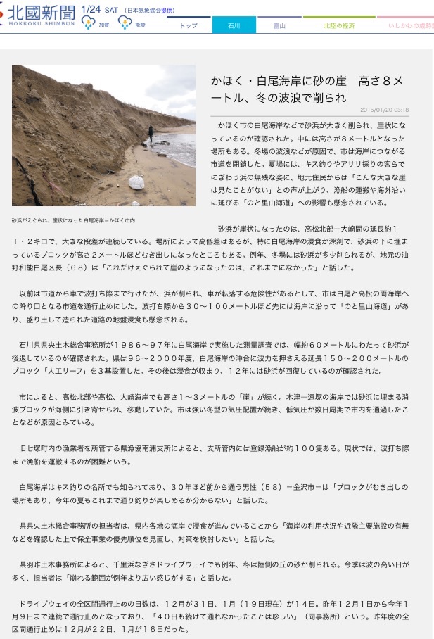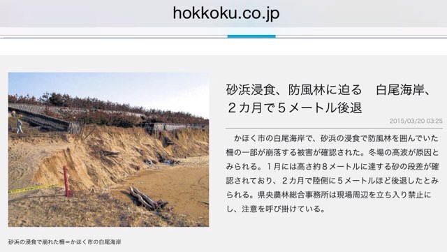 3月20日の朝刊にて、白尾海岸浸食記事の続編をみつけましたので、早速行ってきました。