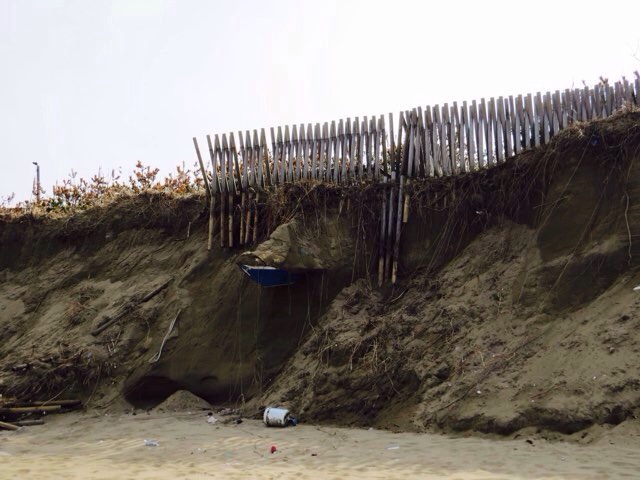 木で作られた柵が、波の浸食により埋まっていた箇所が剥き出しに。