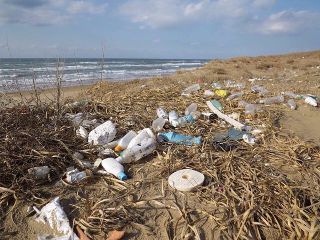 崖の上には漂着物と思われるゴミが散乱。