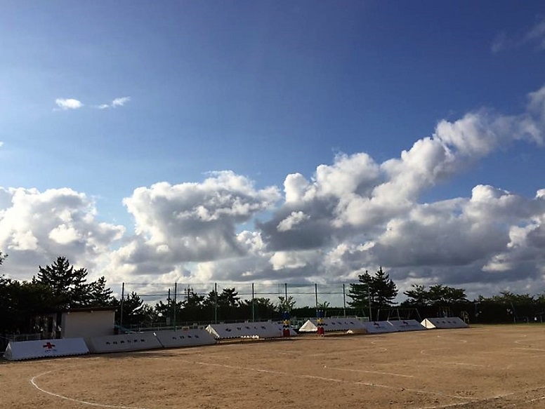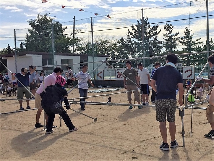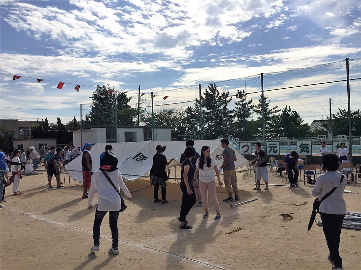運動会の前日、子ども達の待機場所のテントを準備するために、ボランティアを募りました。