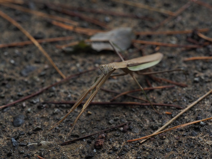 海岸に入る直前の自転車道路にてカマキリと遭遇。