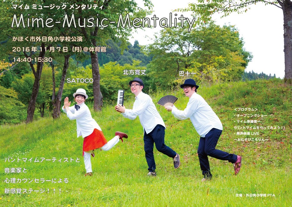 SATOCOさん(マイム)北方さん(ミュージック)巴さん(メンタリティ)です。