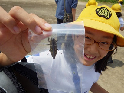外小でマーキングした蝶が、沖縄の小学校で再捕獲されて交流が始まる。