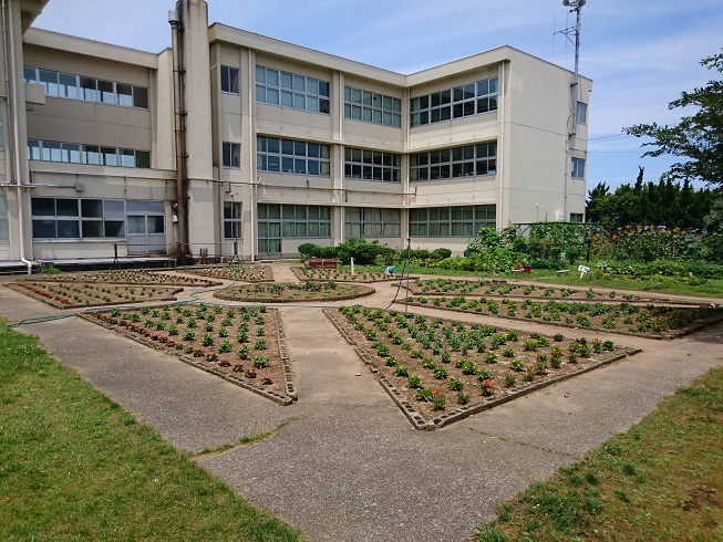 6月29日と7月6日の2回に分けて中庭の花壇を完成させました。