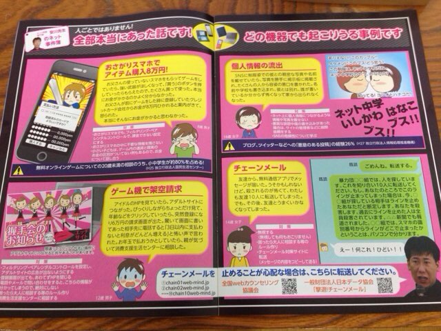 画像は、前回紹介したパンフレットのネットトラブルに関する内容です。