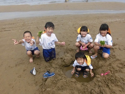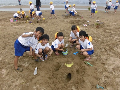 2018年7月17日 14時04分先週、1年生が生活科の授業で外日角の海岸に行き、砂や水を使って遊びました。