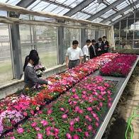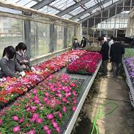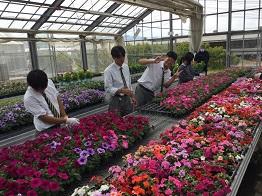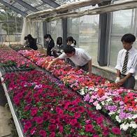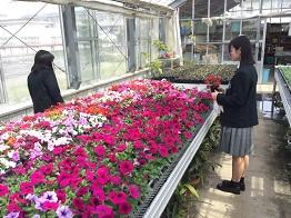 生徒はそれぞれ、草花温室やビニルハウスを回り、草花を選んできました。