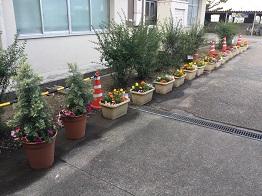 できあがったプランターは生徒玄関前に並べました。