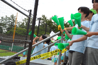 頑張っている野球部のために、毎日昼休みに練習してきた応援団を中心に、全校生徒が一つになって応援しました。