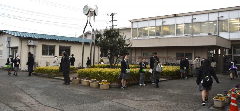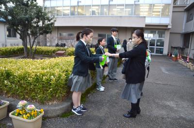 寒い中、毎朝「お願いします」と募金箱を抱えて立つ生徒、