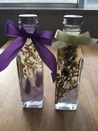 ハーバリウムとは、ガラス瓶にドライフラワーなどを入れ、シリコンオイルもしくはミネラルオイルで満たしたもです。数年間という長期間にわたって鑑賞できることや管理に手間がかからず、インテリアとして大変人気があります。