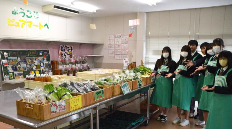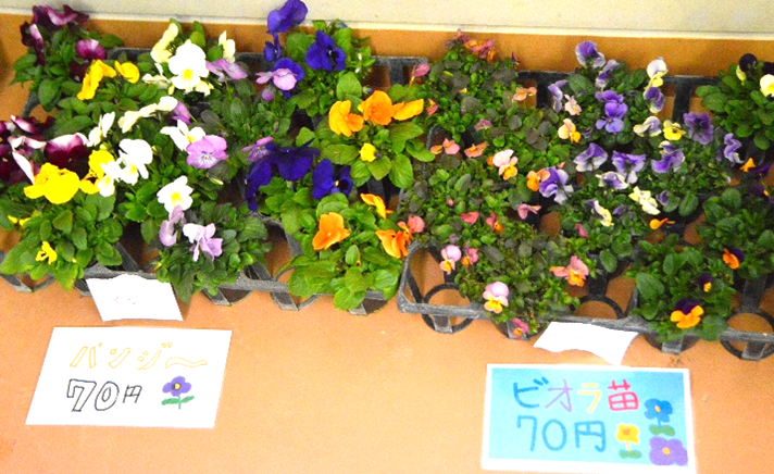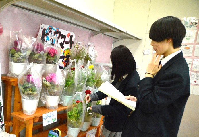 鉢花担当生徒が、配置やPOPを工夫しています。
