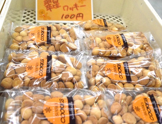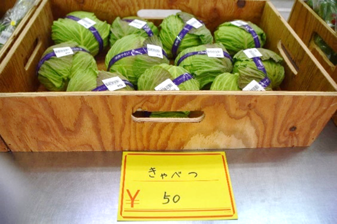 今日も、冬野菜や味噌、パン、クッキー、鉢花などを販売しました。