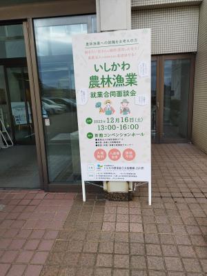12月16日(土)に石川県地場産業振興センターで開催された「いしかわ農林漁業就業合同面談会」に生物資源コース(1年次選択予定者を含む)の生徒たちが参加しました。