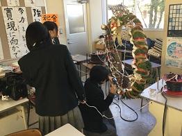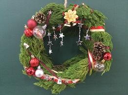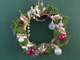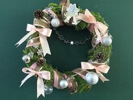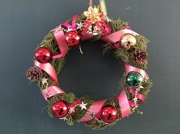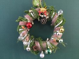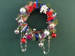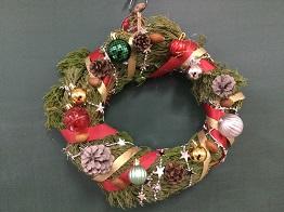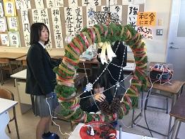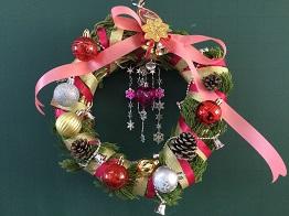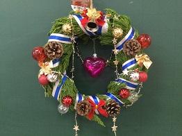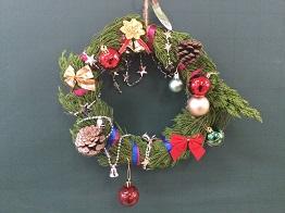 さて、クリスマスリースの第3報として、「生物活用」の授業を選択している生物資源コース園芸福祉分野3年生の生徒のみなさんの作品をご紹介いたします。