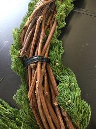 本校のブドウのツルを用いてリースは作られています。